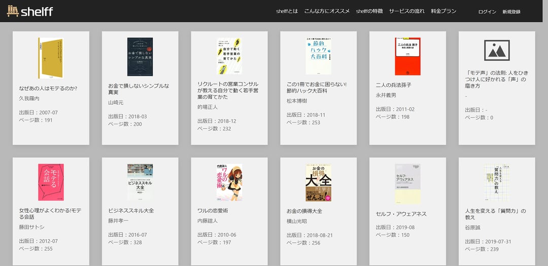 shelffでまず会員登録をしていただくと、会員ページに本がたくさん並んでいますので、その中から読みたい本を選んでいただきます。